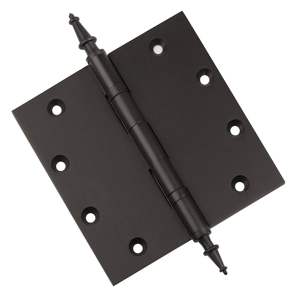 5 x 5 Solid Brass Ball Bearing Hinge, Oil Rubbed Bronze Finish Steeple Tips