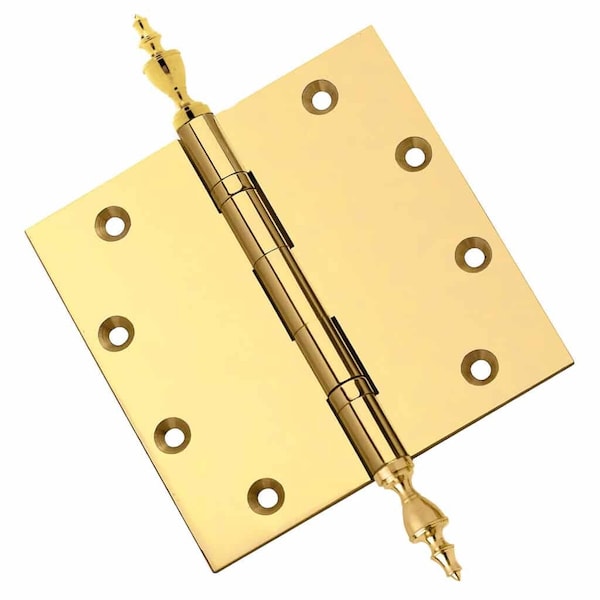 5 x 5 Solid Brass Ball Bearing Hinge, Polished Brass Finish Urn Tips