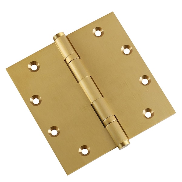 5 x 5 Solid Brass Ball Bearing Hinge, Satin Brass Finish with Flat Tips