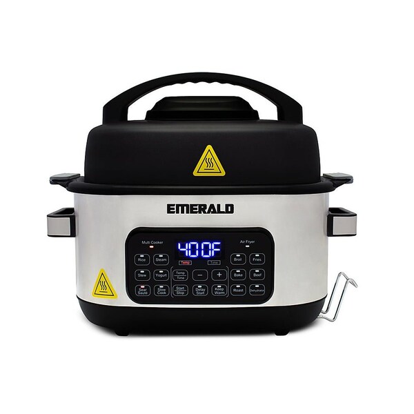 The Emerald 14 in 1 Multi Cooker and Air Fryer Duo eliminates the need for multiple kitchen appliances, it functions as a slow cooker, air fryer, steamer, and much more The dishwasher safe 6 Liter slow cooking pot means coming home to a delicious slow co