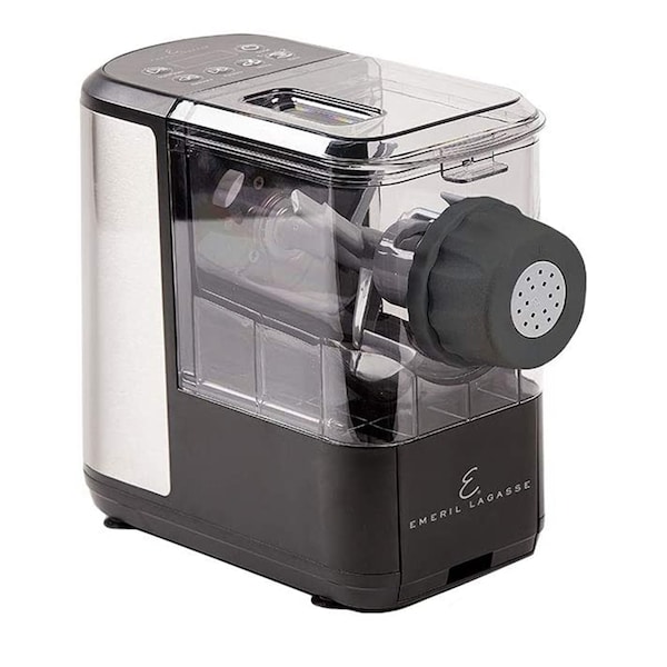 From award-winning chef Emeril Lagasse, Pasta & Beyond is a highly intelligent, fully automatic pasta maker that prepares fresh, homemade pasta faster than it takes to go to the store. Just add ingredients and in a few simple steps, Emeril's pasta maker mixes, kneads, and extrudes authentic homemade pasta for you. Prepare up to 1 lb. of ready-to-boil pasta and noodles in a variety of shapes and flavors in a matter of minutes. Convenient features like a One-Touch LED panel and Advanced Extrusion Technology make using this intuitive, countertop-ready appliance easier than ever. This deluxe version features a slow juicer/frozen treat attachment set and a meat grinder attachment set.