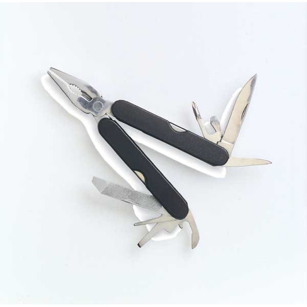 12 Functions: Pliers, Wire Cutters, Bottle Opener, File, Philips Screwdriver, (3) Slotted Screwdrivers, Large And Small Cutting Blades, Can Opener