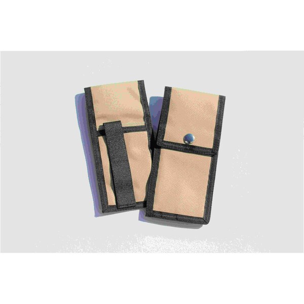 The holster features water repellent 1000 Denier nylon cordura. Padded with extra cushioning foam. Double stitched with heavy nylon thread. Snap belt loop and with reinforced Velcro closure. Two large pockets can hold up to five instruments, etc. Velcro straps secures shears. Can accomodate belts up to 2.5" wide.