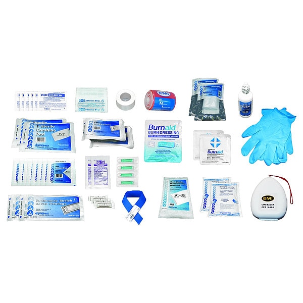 Complete Refill or Kit, Product Type Complete Refill or Kit, Application Disaster; Fire; Survival; Urban or Rural Search and Rescues, Number of People Served 15, Number of Components 105, Number of Pockets 0, Adhesive Bandages Included (12) Bandages, Wound Dressings Included (3) Burn Dressings, (10) Pads, (2) Cold Packs, (2) Pressure Bandages, Tape, Splint, Tourniquet, Trauma Dressing, Miscellaneous Kit Contents Included (2) Markers, Folding Shovel, Helmet, Dust Masks, Headlight, Window Punch