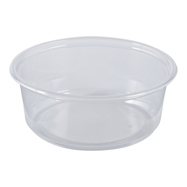 Empress Deli Container Clear 8 oz is a round, clear food storage tub made from durable, shatterproof polypropylene. It is microwave-safe and designed to keep hot or cold foods fresh with a matching lid that fits all round tub sizes in the line. Ideal for kitchen use, restaurants, catering, and take-out, this container offers secure storage and easy transportation. The 8 oz size comes in a pack of 500, suitable for various food types, providing convenience and versatility in food service applications. The clear design allows easy content identification.