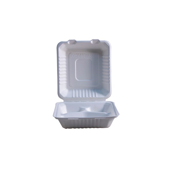 Compostable Container, 3-Comp, 8x8", PK200 (Discontinued)