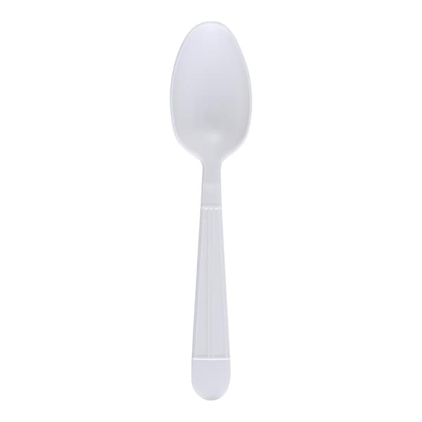This teaspoon is part of the Essentials line of Empress cutlery, made from heavyweight white polypropylene designed to bend before breaking for enhanced durability. The material offers higher density for added strength and quality. The spoon is individually wrapped and suitable for healthcare, education, and environments where safety and value are important. It combines functionality with a robust design that supports frequent use, available in a pack of 1000.