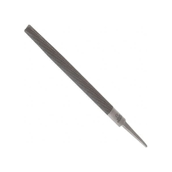 Halfround File. Smooth Cut Coarseness. Rounded on one side and flat on another, for rapid smooth work on cast-iron, bronze, lead, babbit, aluminum, zinc, plastics and any steel up to commercial tool steel. Double cut and tapered. Tang is the tapered end of the file that can either be used to hold the file or inserted into an optional handle. Made from Chromium alloy steel.