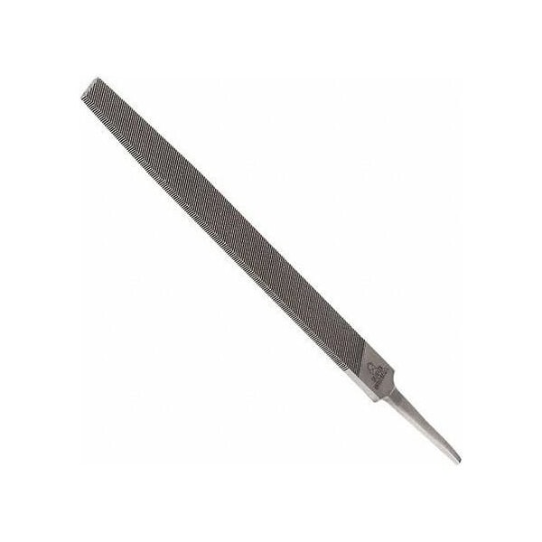 Flat File. 2nd Cut Coarseness. Flat files used on flat, broad surfaces, and sharp corners, generally by machinists, builders, and repairmen. Double cut, single edges, and slightly tapered. Tang is the tapered end of the file that can either be used to hold the file or inserted into an optional handle. Made from Chromium alloy steel.