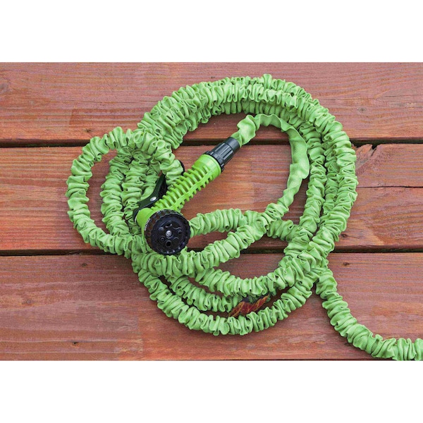 The EMSCO 100ft Expandable Hose is the perfect solution for any home owner or landscape professional, and even for apartment living! The perfect balance between durability and lightweight use, our 50 foot and 100 foot hoses can handle all of your gardening and landscaping needs. Unlike traditional garden hoses, which are bulky and hard to store, our expandable hoses are light and easy to use. They are easy to store by coiling the light hose into one of our storage solutions. Any gardener can quickly and easily expand the hose to use immediately wherever you need it. The hose is available in either 50 foot or 100 foot lengths so you can choose the option that fits your life perfectly. Stop hauling around a bulky garden hose that is impossible to recoil correctly! Switch to an expandable garden hose- your curb appeal with thank you. Our hoses are exceptionally durable. Sturdily constructed out of multiple layers of synthetic rubber, so our durable hoses wont tear or snag. Unlike inferior imitations that are made of only a single layer of rubber and rupture easily, our durable hose will last through many seasons. Best of all, it wont kink - making it the ideal garden hose for frustration-free yard and garden management. It recoils easily after use to make cleaning up a breeze. The EMSCO expandable hose comes with a spray nozzle attached to a flexible body of synthetic rubber. With a simple compression handle and various spray settings, you can adapt the hose to a variety of uses without fussing with multiple attachments. Offering the best value along with superior durability, the EMSCO lightweight hose is a great choice for a convenient, sturdy, all-purpose hose that will last you through many seasons, stores convenient in tight spaces, and handles everything from tiny flower boxes to major landscaping.