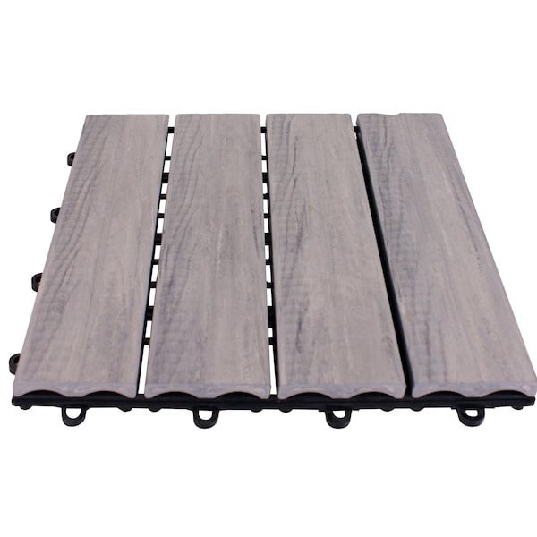 Interlocking Wood Floor Tiles, 12in x 12in Paver, Grey Wood, 12PK