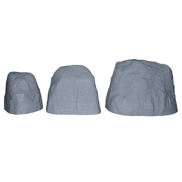 Enhance your yards appeal with an EMSCO landscape rock! With its natural color, this artificial rock has a natural appearance that blends well with gardens, lawns, and landscapes. It is natural-looking exterior also has a realistic texture that will add a feel of authenticity to your lawn. This multipack includes a large, medium and small sized landscape rock which you can use to create a small quarry or place each in different locations for a variety of jobs. Each plastic rock is easy to install and lightweight. To keep them in place, two stakes are included to anchor the product securely to the ground. Each artificial rock is durable and resilient, as it is able to withstand extreme weather conditions. It has a high-density resin construction that displays a very sturdy and realistic-looking structure. These natural-looking rocks can be placed over wells, pipes, pumps, sprinkler valves, and other fixtures to block them from sight, thus enhancing the aesthetic of the terrain. It can be used to cover up utilities in lawns, yards, or landscapes or to hide keys and equipments. It also accentuates the greens of lawns with its neutral stone texturing. EMSCO has a complete line of boulders and stones of varying sizes available to match your lawn and landscape needs. Decorate your landscape with only the best by using EMSCO Landscape Rocks!L rock 17.5in x 24in x 18.5in height x length x widthM rock 16.5in x 20in x 15inLarge rock 14in x 14.375in x 10.75in