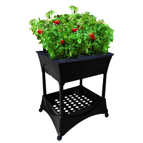 Enjoy gardening with EMSCO Groups Easy Picker Elevated Grow Box! Made of UV-protected resin, the Easy Picker garden is designed to support a grow box, plants, and soil. Four easy swivel casters give you complete control over the boxs positioning, letting you take maximum advantage of moisture, temperature, and sunlight. This portable garden bed is ideal for homeowners with limited space that wish to grow plants and vegetables and works indoors and outdoors. Owners can take advantage of the Easy Pickers small footprint and the mobility provided by casters to grow vegetables on their deck, balcony, fire escape, and other small spaces even in closets.Additionally, the Easy Picker automatically waters plants by wicking water from its water reservoir. Plants rest above an aeration screen to improve the flow of oxygen to their roots, promoting faster growth. For added convenience, below the grow box is a storage grid for all of your gardening supplies, allowing for easy storage and transport. The products resin is a food-safe, high-density polyethylene that is BPA- and phthalate-free and even FDA-approved for contact with edibles, which makes it safe for growing edible vegetables.The Easy Picker has an elevated height of 30in to eliminate the need for kneeling, stooping, or bending, allowing homeowners to enjoy gardening efficiently and without difficulty. It is also ideal for seniors and wheel chair users. The Easy Picker includes an instruction booklet to get you growing in no time! Start your very own mini greenhouse at home with the EMSCO Easy Picker!