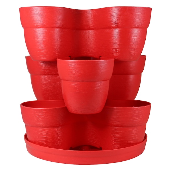 Stackable Flower Tower Planter, Holds up to 9 Plants, Great Both Indoors and Outdoors, Red