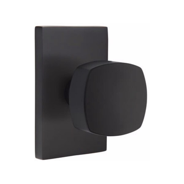 Emtek is dedicated to helping bring your personal style to life. Door hardware is more than a way to open, close, and secure a space. To us, it is an integral part of a room's design theme. Each order is custom assembled in our Southern California facility. There is no predetermined combination of knobs, levers, rosettes and finishes; we let you mix and match according to your own taste. Door hardware should make a statement, your statement.. Freestone Knob 2-3/8 in Backset Privacy With Modern Rectangular Rose for 1-1/4 in to 2 in Door Flat Black Finish