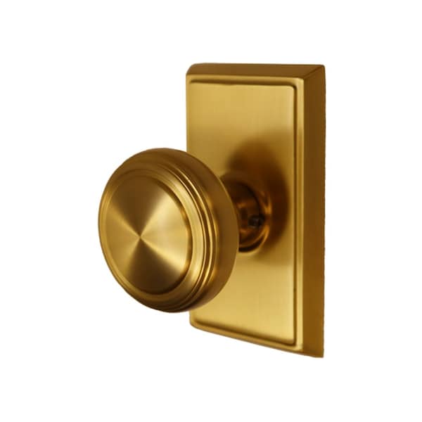 Norwich Knob Dummy Pair with Rectangular Rose for 1-1/4 in to 2 in Door Satin Brass Finish
