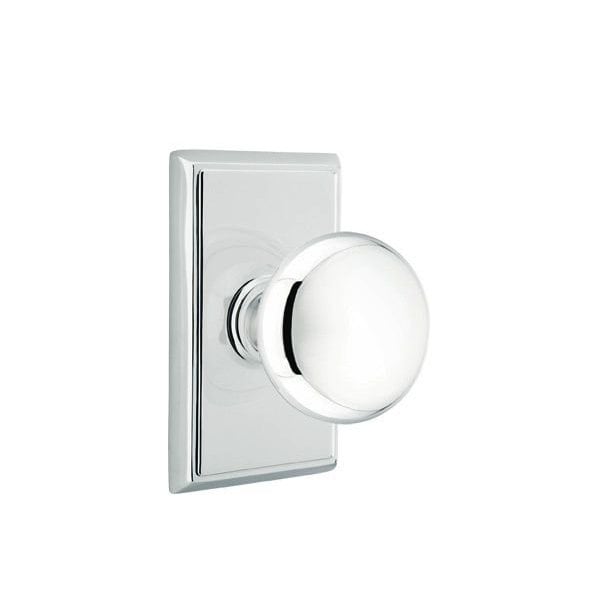 Emtek is dedicated to helping bring your personal style to life. Door hardware is more than a way to open, close, and secure a space. To us, it is an integral part of a room's design theme. Each order is custom assembled in our Southern California facility. There is no predetermined combination of knobs, levers, rosettes and finishes; we let you mix and match according to your own taste. Door hardware should make a statement, your statement.. Providence Knob 2-3/8 in Backset Passage With Rectangular Rose for 1-1/4 in to 2 in Door Polished Chrome Finish