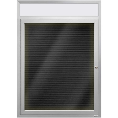 Illuminated Outdoor Enclosed Bulletin Board w/ Al Frame Header, Powder Coated Black, 24''Hx18''W