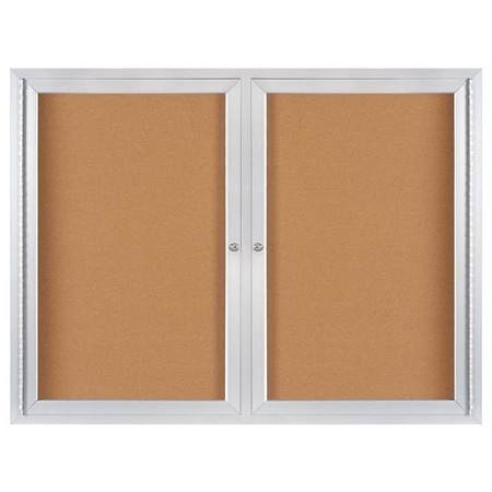 Enclosed Natural Pebble Grain Cork Bulletin Board w/ White Powder Coated Al Frame, 36''Hx36''W