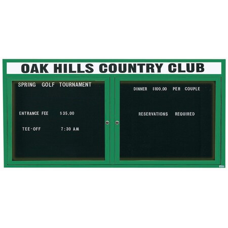 Illuminated Enclosed Letter Board Directory w/ Powder Coated Green Al Frame, 48''Hx72''W 2 Doors