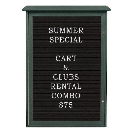 42"x32" 2-Door Enclosed Outdoor Letterboard, Green Felt/Black