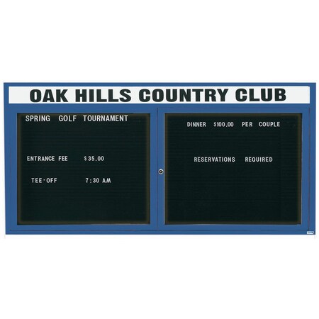 Illuminated Enclosed Letter Board Directory w/ Powder Coated Blue Al Frame and Header, 36''Hx72''W
