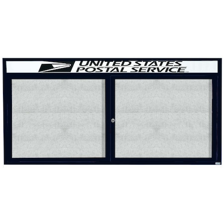 Illuminated Outdoor Enclosed Bulletin Board w/ Al Frame Header, Powder Coated Blue, 48''Hx72''W