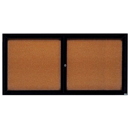 Enclosed Natural Pebble Grain Cork Bulletin Board w/ Bronze Anodized Al Frame, 36''Hx72''W Two Door