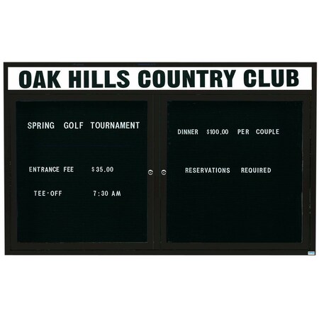 Enclosed Letter Board Directory w/ Powder Coated Green Al Frame and Header, 36''Hx72''W, 2 Doors