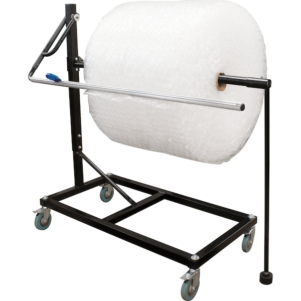 This extra-large mobile dispenser features a straight-forward industrial design with solid steel tubing. Can dispense a wide-range of consumables, including: bubble, foam, shrink wrap, poly sheets and more! Features a brake arm with an ergonomic smooth-glide slide cutter for easily cutting consumables. Features locking casters to hold stand in place. Arm stabilizer available per request.