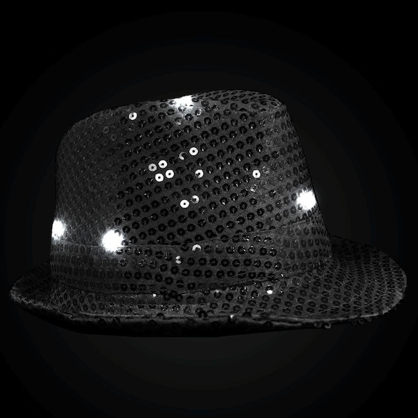 LED Flashing Fedora Hat with Sequins, Black