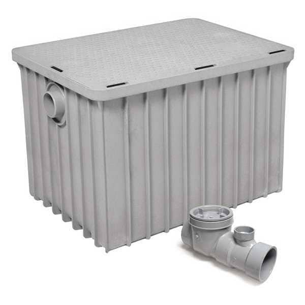 Grease Interceptor, Outlet Connection Type Gasket, Application Grease, Overall Depth 23 1/2 in, Overall Width 31 in, Features Dynamic Baffle, Pedestrian Rated Access Cover, Silicon Odor Seal, Maximum Temperature 220 Degrees F, Standards CSA, UPC, Inlet Pipe Size 3 in, Finish Unfinished, Flow Rate 50 gpm, Capacity 50 lb, Includes Flow Control, Material Plastic, Inlet Connection Type Gasket, Outlet Pipe Size 3 in, Overall Length 23 1/2 in, Product Type Grease Interceptor