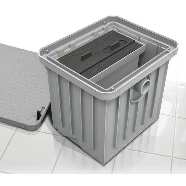 Solids Interceptor, Outlet Connection Type Gasket, Application Solids, Overall Depth 12 1/8 in, Overall Width 17 1/2 in, Color Gray, Features Pedestrian Rated Access Cover, Silicon Odor Seal, Maximum Temperature 220 Degrees F, Inlet Pipe Size 2 in, Finish Unfinished, Flow Rate 25 gpm, Capacity 14 lb, Includes Basket, Material Plastic, Inlet Connection Type Gasket, Outlet Pipe Size 2 in, Overall Length 14 1/2 in, Product Type Solids Interceptor