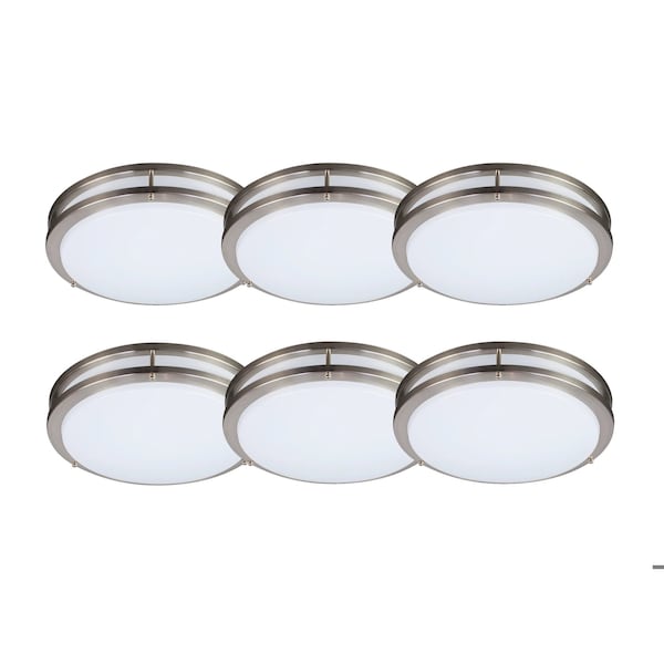12in LED Ceiling Light Dimmable Modern Flush Mount, Brushed Nickel Selectable CCT and Watts, 6PK