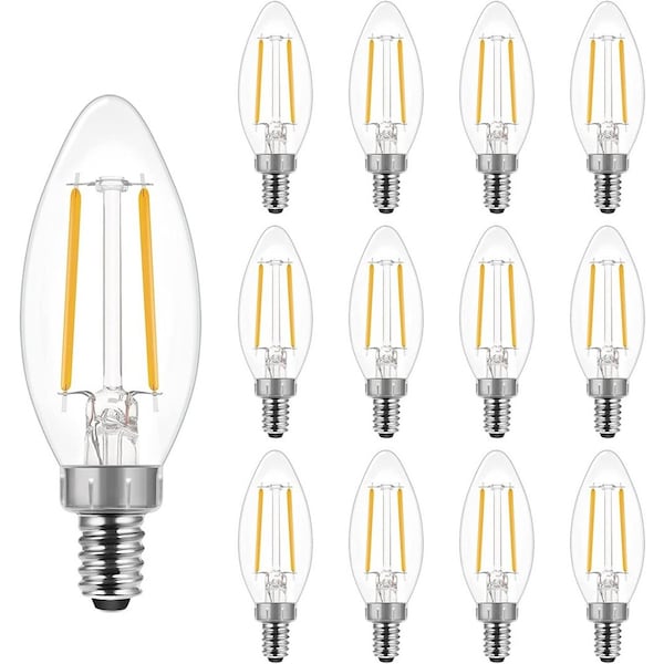 12-Pack 60-Watt Equivalent, 2700K soft white, B11 LED filament light bulb has an original clear glass antique style which exudes a classic retro look. You could easily create a retro vintage look in any room or illuminate your clean modern style with pizzazz. Utilizing today's latest innovative LED technologies, it is a great replacement lamp for existing incandescent lamps, which could offer a lifespan of 15,000-hours and create a comfortable atmosphere for any dining room, study room, bedroom and living room.