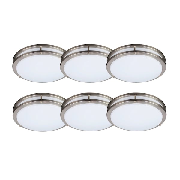 LED 18-inch Round Flushmount, Brushed Nickle, 3 CCT 3 Wattages Selectable Ceiling Lamp, 6PK