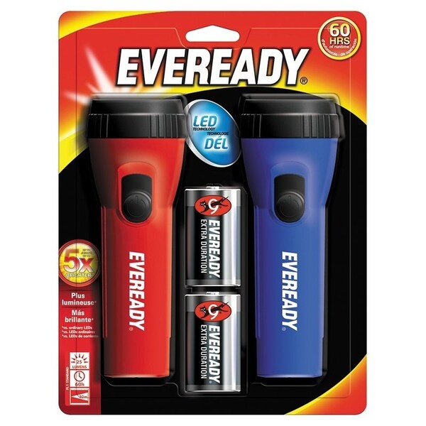Economy flashlight, antiroll design, ribbed casing for strength and a nonslip grip Contoured slide switch Lifetime white LED never needs replacing Operates for 40 hrs using 1 Eveready super heavy duty Dsize battery 9 Lumens with a beam distance of 57 m Typical weight of 62 g without battery 160 mm L x 40 mm Dia Assembled in the USA Red, blue green and orange colors Do not specify color