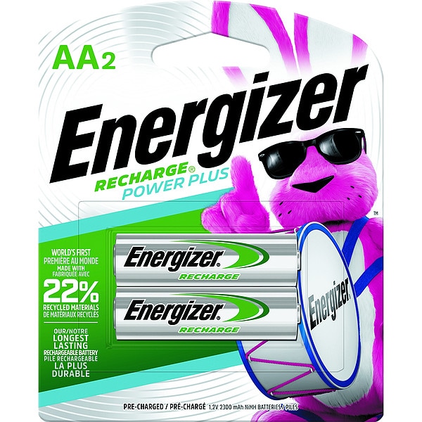 Rechargeable Battery, Battery Size AA, Battery Chemistry Nickel-Metal Hydride, Voltage - Batteries 1.2V DC, Recharge Time 5 hr, Capacity - Batteries 2,300 mAh, Shelf Life 3 yr, Rechargeable Up To 1500 Times, Precharged Yes, Max. Operating Temp. 122 Degrees F, Min. Operating Temp. 32 Degrees F, Standard Battery Pack Size 2, Standards ANSI-1.2H2, IEC-HR06, Diameter 0.6 in, Height 1.9 in, Overall Height 2 in, Standard Battery Series Recharge Power Plus, Package Quantity 2