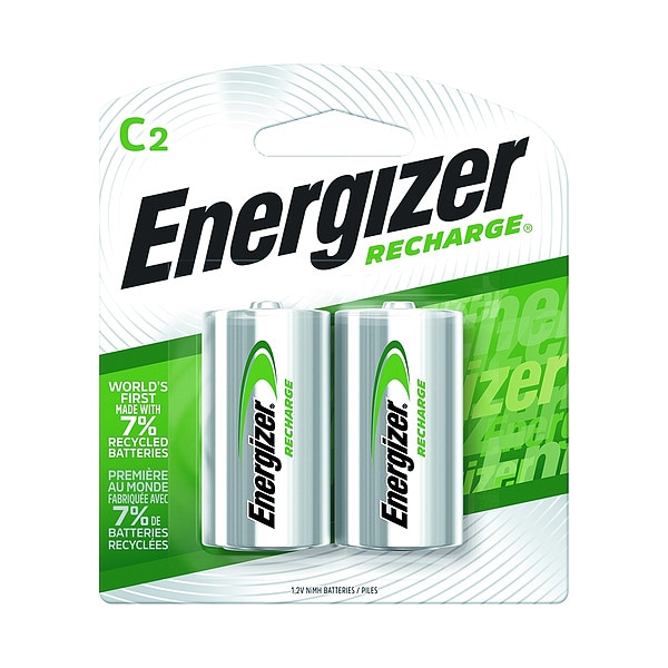 Rechargeable Battery, Battery Size C, Battery Chemistry Nickel-Metal Hydride, Voltage - Batteries 1.2V DC, Recharge Time 5 hr, Capacity - Batteries 2,500 mAh, Shelf Life 3 yr, Rechargeable Up To 300 Times, Precharged Yes, Max. Operating Temp. 122 Degrees F, Min. Operating Temp. 32 Degrees F, Standard Battery Pack Size 2, Standards ANSI-1.2H3, Diameter 1 in, Height 1.9 in, Overall Height 2 in, Width 1 in, Standard Battery Series Recharge, Package Quantity 2