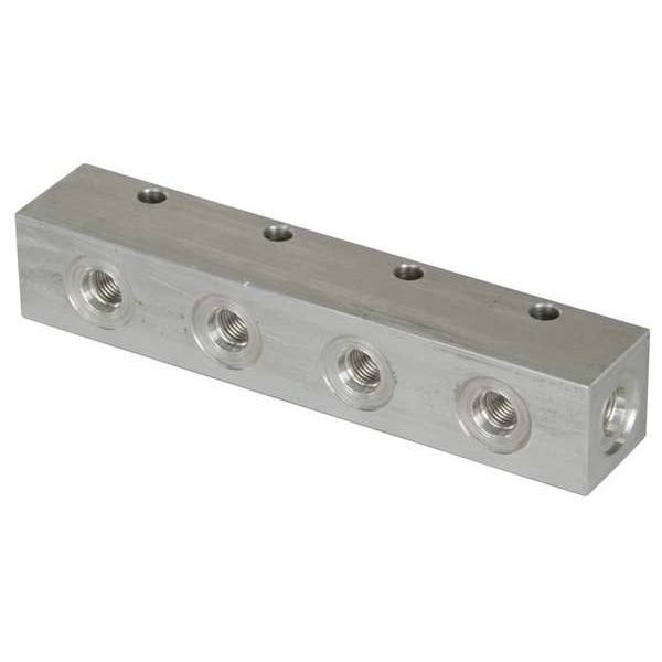 Manifold, Body Material Aluminum, Overall Height 1.25 in, Overall Length 6.5 in, NFPA Size Not Applicable, Overall Width 1.25 in, Pressure - Maximum 5,000 psi, Port Connection Gender Female, Port Connection Size #4, Port Connection Type SAE O-Ring Boss, Mounting Hole Size 0.28 in, Operating Temperature - Maximum 180 Degrees F, Operating Temperature - Minimum 32 Degrees F, Series A, For Media Oil
