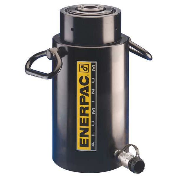 Lightweight Lock Nut Hydraulic Ram, Single Acting, Lock Nut, Aluminum, Nominal Capacity 30 ton, Stroke Length 5 7/8 in, Nominal Stroke Length 6 in, Effective Push Area 6.85 sq in, Max. Pressure 10,000 psi, Oil Capacity Push 40.48 cu in, Retracted Height 13.04 in, Extended Height 18.95 in, Outside Dia. 3.94 in, Plunger Dia. 2.36 in, Plunger Thread Size M6, Base Bolt Circle Dia. 3.15 in, Center Hole Dia. 2 15/16 in, Series RACL, Includes Coupler, Dust Cap