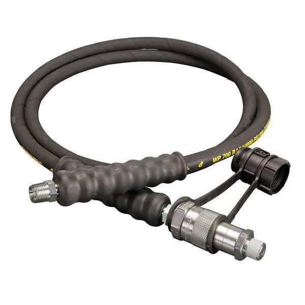 Hydraulic Hose Assembly, Hose Inside Dia. 1/4 in, Hose Length 6 ft, Hose Tube Material Rubber, Hose Cover Material Polyurethane, Hose Reinforcement Type Braid, Hose Reinforcement Material Carbon Steel, Hose Color Black, Series H900, Max. Working Pressure @ 70 F 10,000 psi, Safety Factor 2:1, Hose Configuration Coupled Assembly, Hose Fitting B Size 3/8 in, Hose Fitting A Type C604, Hose Fitting B Type NPTF