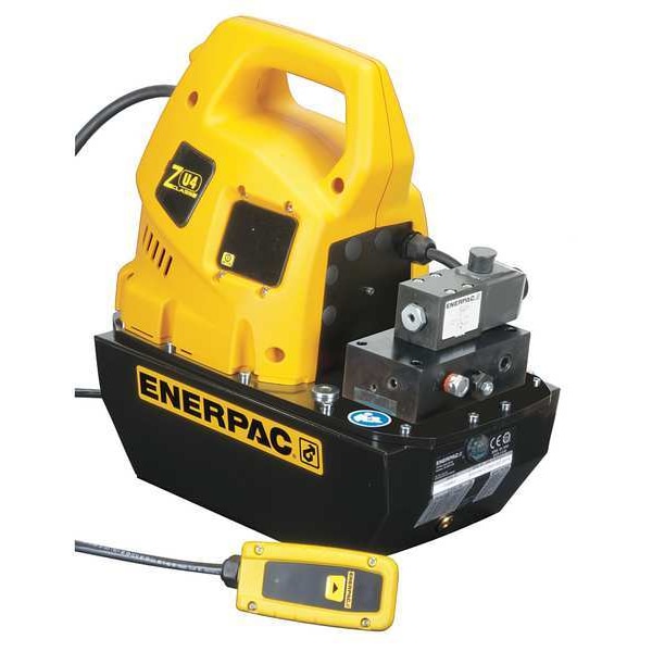 Hydraulic Pump, Horsepower - Maximum 1 7/10 hp, Nameplate Voltage 115V AC, Duty Cycle Intermittent, Phase Single, Operating Pressure - Maximum 10,000 psi, Displacement @ 5000 psi 76 cu in/min, Displacement @ 10,000 PSI 60 cu in/min, Control Valve Type 2-Position, 3-Way, Reservoir Capacity 2 gal, Reservoir Material Steel, Overall Height 16.7 in, Cylinder Compatibility Single Acting, Charger Input Voltage 115V AC, Control Pendant Size 10 ft, Control Pendant Voltage Manual