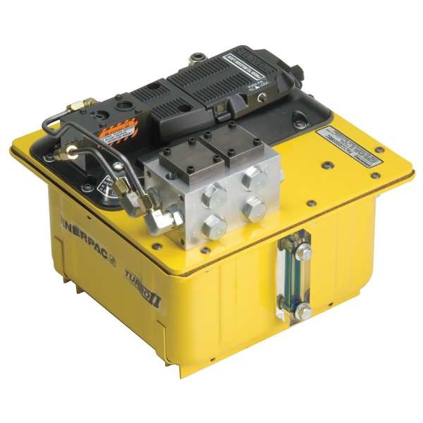 Hydraulic Pump, Reservoir Capacity 2 gal, Air Intake Pressure - Maximum 125 psi, Air Intake Connection Size 1/4 in, Operating Pressure - Maximum 5,000 psi, Displacement @ 5000 psi 180 cu in/min, Sound Level - Maximum 75 dBA, Actuation Type Pendant, Air Consumption - Maximum 12 scfm, Air Intake Connection Type FNPT, Features Ergonomic Design, Pedal Lock Function, Pressure Relief Valve, Flow Rate - Maximum 180 cu in/min, Overall Height 13.4 in, Overall Length 12.5 in, Overall Width 12 in