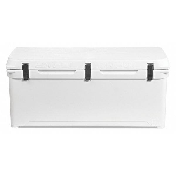 Marine Chest Cooler, Marine Chest Cooler, With Wheels No, 108 qt, Exterior Length 41 1/4 in, Exterior Width 18 1/4 in, Exterior Height 18 1/4 in, Exterior Dia. Not Round, Plastic, Ice Retention Up to 10 days, Body Color White, Lid Color White, Number of Cans 100