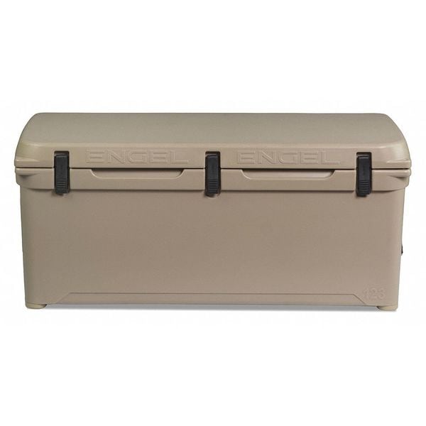 Marine Chest Cooler, Marine Chest Cooler, With Wheels No, 108 qt, Exterior Length 41 1/4 in, Exterior Width 18 1/4 in, Exterior Height 18 1/4 in, Exterior Dia. Not Round, Plastic, Ice Retention Up to 10 days, Body Color Tan, Lid Color Tan, Number of Cans 100