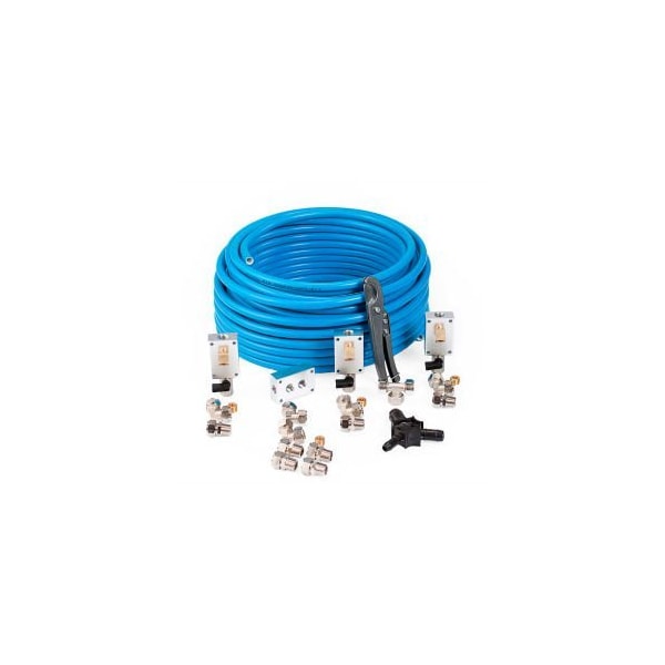 MAXLINE RAPIDAIR M3800, 1/2" MASTER KIT 100 FT. 3 OUTLETS SET UP A COMPRESSED AIR SYSTEM WITH THE 1/2 IN. MAXLINE MASTER KIT WITH 3 AIR OUTLET LOCATIONS. THE MAXLINE TUBING HAS AN ALUMINUM CORE SANDWICHED BETWEEN AN INNER AND OUTER LAYER OF POLYETHYLENE. TUBING CAN BE MOUNTED ON WALL SURFACES, IN WALL, OR BURIED UNDERGROUND OR CONCRETE. TUBING HOLDS ANY HAND BENT SHAPE. REDUCE SHOP CLUTTER WITH THIS INDUSTRIAL COMPRESSED AIR PIPING SYSTEM. NO GLUE, SOLDERING OR CRIMPING NEEDED. SIMPLY CUT THE TUBING TO LENGTH, INSERT IN THE FITTING AND TIGHTEN. EASY TO EXPAND WITH MORE AIR OUTLET LOCATIONS OR MODIFY LATER.