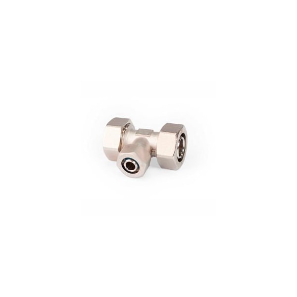 MAXLINE RAPIDAIR M8014, 3/4" RED. TEE X 1/2" TUBING THE MAXLINE 3/4 IN. TUBING X 1/2 IN. TUBING X 3/4 IN. TUBING, REDUCING TEE FITTING, FEATURES A COMPRESSION FITTING STYLE TO MAKE FAST AND EASY CONNECTIONS. THERE IS NO GLUE, SOLDERING OR CRIMPING NEEDED. SIMPLY CUT THE TUBING TO LENGTH, INSERT IN THE FITTING AND TIGHTEN.