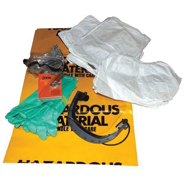 Spill Kit, Fluids Absorbed Not Applicable, Neutralizes Chemical Type Not Applicable, Volume Absorbed Per Kit Not Applicable, Container Type Bag, Not Applicable Container Capacity, 15 in Container Size, Clear, Filled, Sorbents Included Not Applicable, PPE Included (1) Face Shield, (1) Face Shield Bracket, (3) Goggles, (3) Pairs Boot Covers, (3) Pairs Nitrile Gloves, (3) Tyvek Suits, Additional Components Included (3) Disposal Bags and Ties, Emergency Response Guide, (1) Spill Pak Bag, Lockable No