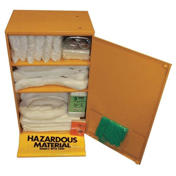 Spill Kit Refill, Fluids Absorbed Oil-Based Liquids, Volume Absorbed Per Kit 25 gal, Container Type Refill, 25 gal Container Capacity, 14 1/2 in W x 20 in L x 33 in H Container Size, Brown, Sorbents Included (50) Oil Only Absorbent Pads, (6) Oil Only Pillows, (7) Medium Oil Only Socks, 1 gal Jug ENSORB, PPE Included (2) Pair goggles, (2) Pair Nitrile Gloves